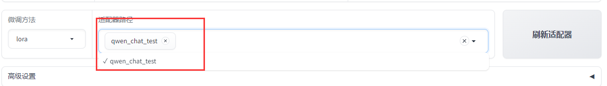 当训练完成后,点击刷新适配器,在适配器路径选择刚刚训练好的模型。